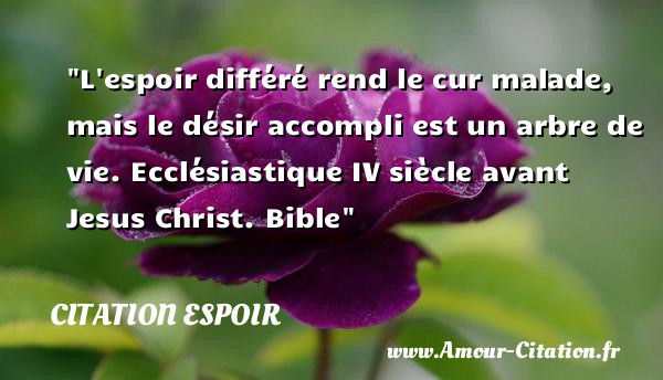 L’espoir différé rend le cur malade, mais le désir accompli est un arbre de vie.